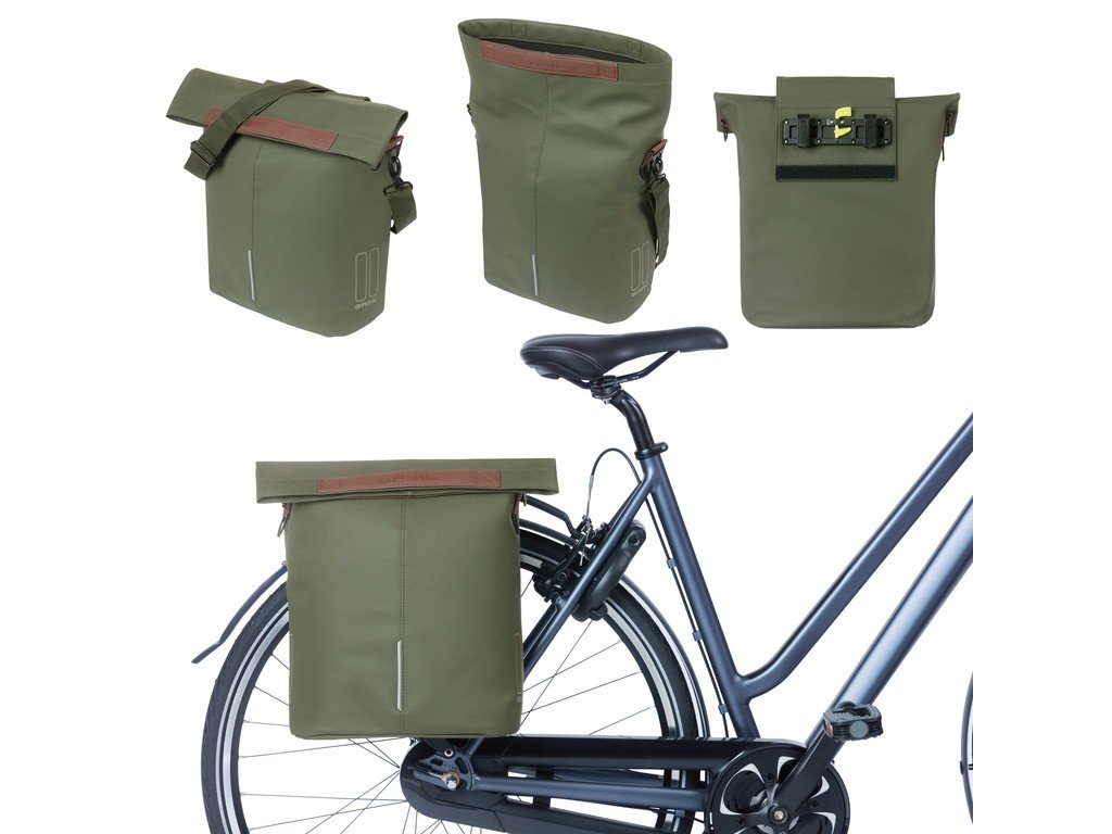 Tato taška je vybavena magnetickým, voděodolným skládacím uzávěrem, který účinně zabraňuje vniknutí vody do jejího vnitřku, čímž chrání vaše věci i při dešti. Připevnění na nosič zavazadel je jednoduché, díky robustnímu háčkovému systému. Navíc si tašku můžete pohodlně přehodit přes rameno pomocí odnímatelného ramenního popruhu pro více volnosti a pohodlí při přenášení. Díky držadlům z veganské kůže je taška příjemná na nošení, ať už ji nesete v ruce nebo přes rameno. Uvnitř tašky najdete přihrádku na zip, ideální pro bezpečné uložení drobností. Navíc je taška připravena na připevnění LED světla, což zvyšuje vaši viditelnost a bezpečnost při jízdě za šera nebo v noci.