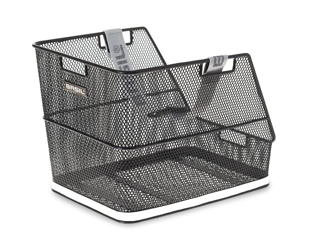 Basil Class je stylový a praktický košík navržený speciálně pro školní tašky, ideální pro žáky a studenty, kteří dojíždějí do školy nebo na univerzitu na kole. Tento košík v černé barvě je vhodný pro dívky i chlapce a slouží k bezpečné přepravě školní tašky nebo batohu, aniž by hrozilo, že učebnice skončí na silnici. Košík se snadno upevní na zadní nosič pomocí přiloženého montážního materiálu. Pro větší pohodlí při jízdě má zkosenou stranu směrem k sedlu, která poskytuje dostatek prostoru pro volný pohyb nohou. Součástí je také odnímatelný popruh pro bezpečné uchycení tašky. O vaši viditelnost v noci se postará reflexní proužek na spodní straně košíku.