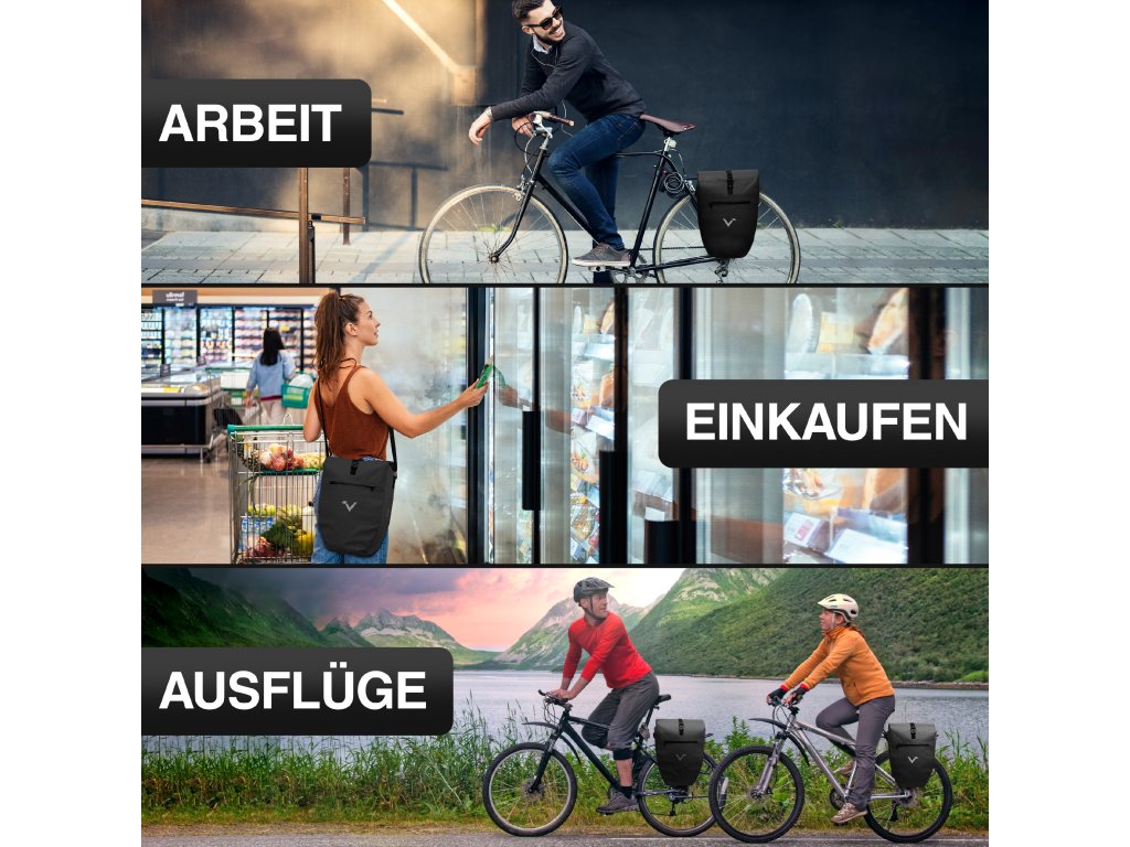 Větší brašna ValkBasic je praktickým a spolehlivým řešením pro každodenní dojíždění i delší cyklistické výlety. Díky voděodolnému materiálu z odolné plachtoviny spolehlivě ochrání vaše věci před deštěm, vlhkostí i nečistotami. Rolovací uzávěr umožňuje snadno přizpůsobit objem podle aktuální potřeby v rozmezí 22 až 28 litrů a zároveň zajišťuje bezpečné uzavření obsahu. Brašna má rozměry 62 × 32 × 17 cm, takže nabízí dostatek prostoru bez zbytečné zátěže. Upevnění na nosič je řešeno pomocí pevných háků s maximálním průměrem 16 mm, přičemž vzdálenost háků od dna brašny je 37 cm. Součástí balení jsou také redukční vložky pro různé průměry trubek, což zajišťuje širokou kompatibilitu s různými typy nosičů.