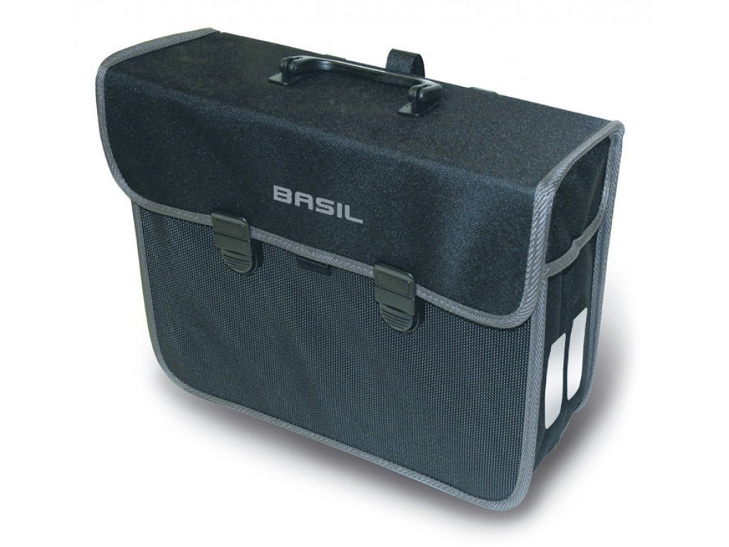 S objemem 13 litrů je tato taška ideální pro nákupy. Lze ji snadno připevnit k boku nosiče pomocí plastových háčků. Taška je skvělým vynálezem pro jízdu na kole po okolí, protože do ní lze uložit svačinový balíček nebo oblečení do deště. Basil Malaga je vybavena dvojitými reflexními pruhy na boku, které zajišťují lepší viditelnost i večer. Boční klopy jsou vyztuženy závažím, což chrání obsah před vodou. Taška se jednoduše otevírá a zavírá pomocí systému Klik.