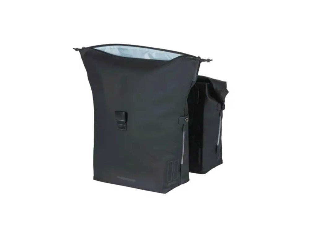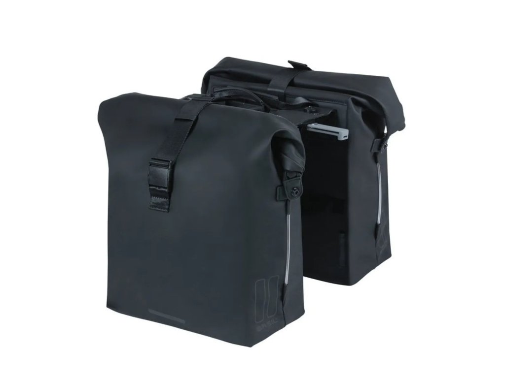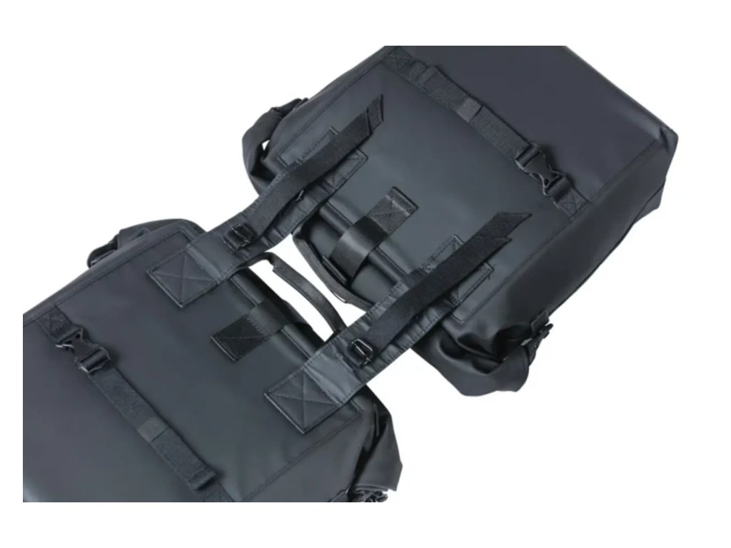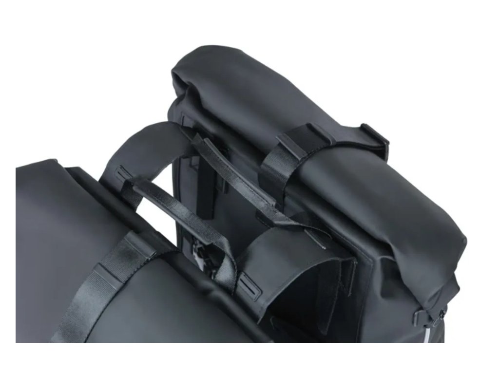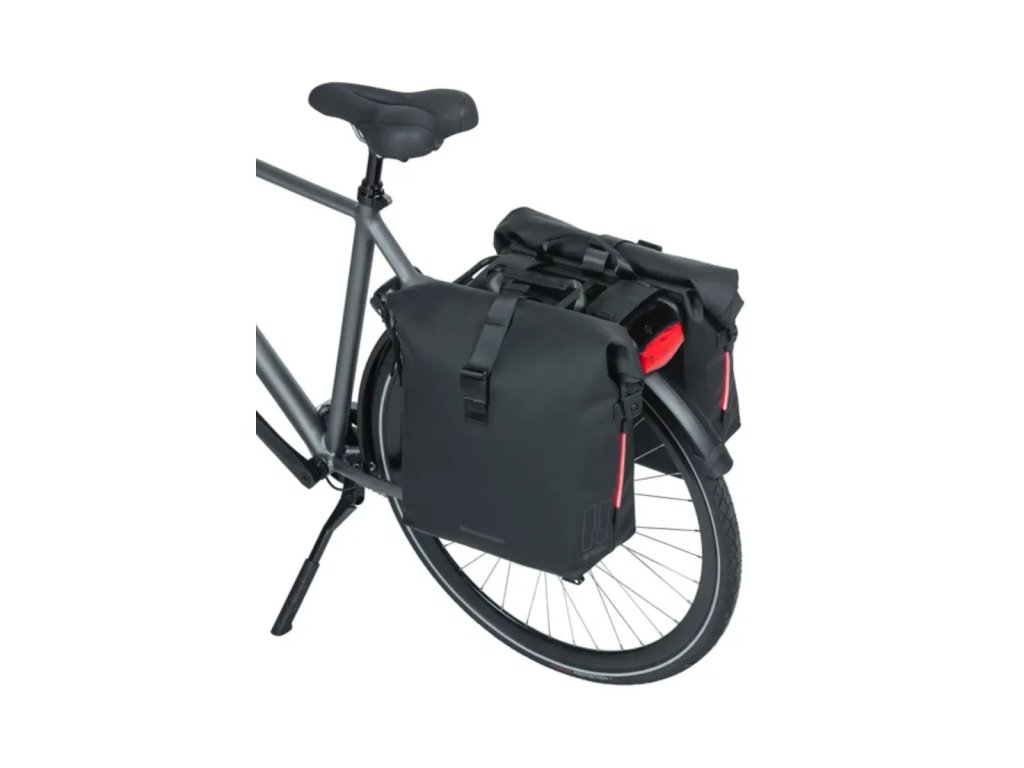 Hledáte prostornou brašnu na kolo, která zároveň dobře vypadá? Pak je dvojitá brašna na kolo Basil SoHo Northern Lights ta pravá. Je vyrobena z matného PU materiálu, který je velmi jemný na dotek a má objem 41 litrů. Brašna je vodotěsná (IPX3), takže vaše věci zůstanou vždy v suchu. Brašna se uzavírá rolovacím uzávěrem, který se připevňuje k bokům brašny pomocí patentek. Brašna je vybavena technologií Nordlicht, integrovaným LED páskem. To vám pomůže vyniknout ve tmě. Osvětlení LED funguje na 2 baterie AAA.