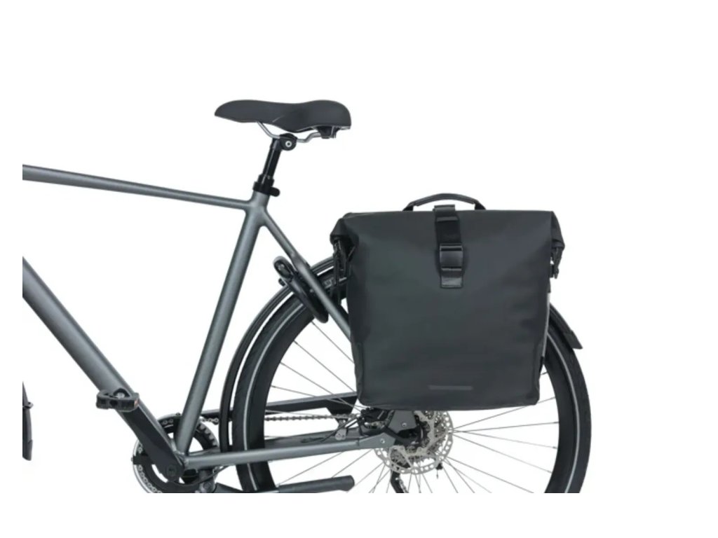 Díky systému Universal Bridge můžete dvojitou tašku na kolo Basil SoHo snadno připojit k nosiči. Díky systému Universal Bridge si můžete vybrat, jak chcete brašnu připevnit. Lze jej připevnit buď pomocí předmontovaných popruhů, nebo v kombinaci se systémem Basil DBS, nebo pomocí adaptérové destičky, například MIK. Oba systémy je nutné zakoupit samostatně.