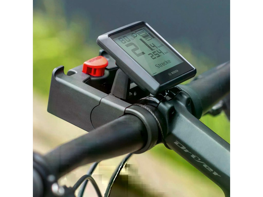 Montážní můstek s podstavcem pro pro připevnění displeje Bosch Intuvia s možností kombinace s klasickým adaptérem na řídítka Klickfix. Displej je umístěn uprostřed nad adaptérem a ponechává dostatek prostoru pro zacvaknutí tašky nebo košíku. Držák displeje posouvá adaptér na řídítka o 25 mm dopředu. Podstavec lze namontovat ve třech výškách vlevo nebo vpravo, aby vznikl dostatečný prostor pro naklápění displeje, kabelů nebo představce.