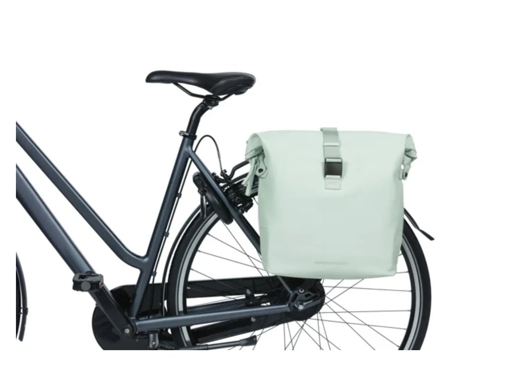 Hledáte prostornou tašku na kolo, která zároveň dobře vypadá? Pak je dvojitá taška na kolo Basil SoHo Nordlicht MIK v pastelově zelené barvě přesně pro vás. Taška je vodotěsná (IPX3), takže vaše věci zůstanou vždy v suchu. Tašku uzavřete pomocí rolovacího uzávěru, který připevníte k bokům tašky pomocí stiskacích cvočků.