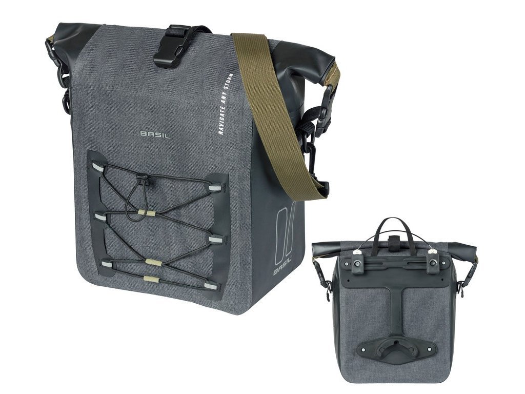 S brašnou Basil Navigator Storm M získáváte spolehlivého a odolného partnera na cesty. Tato sportovně laděná taška na jednu stranu nosiče je ideální pro každodenní jízdu i víkendové výlety. Taška je vyrobena z kvalitní voděodolné tkaniny s ochranou IPX3, která udrží vaše věci v suchu i za nepříznivého počasí. Díky promyšlenému designu snadno přepravíte vše, co potřebujete, ať už jde o pracovní věci, oblečení nebo vybavení na delší cestu. Praktické detaily, jako je nastavitelné elastické lanko pro upevnění bundy a rolovací uzávěr, který lze zajistit třemi různými způsoby, zvyšují pohodlí při používání. Reflexní loga Basil umístěná na třech stranách zajišťují dobrou viditelnost i při jízdě ve tmě nebo za šera. Ať už míříte kamkoli, s touto brašnou jste vždy dobře vybaveni a viditelní.