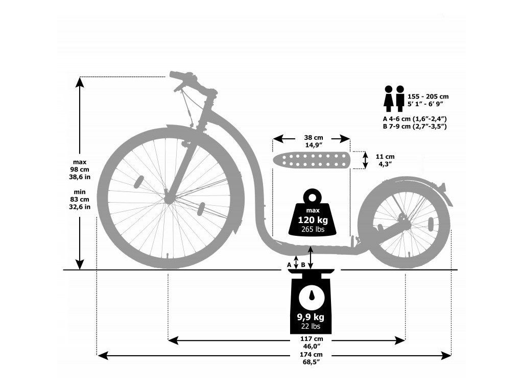 G4 je ocelová dostupnější varianta ke vlajkové lodi KickBike RaceMax 20. Sportovní koloběžka pro ježdění po cyklostezce a schopná i výletu do lehkého terénu. Univerzál na skoro cokoliv. Má širší a kratší stupátko jako všechny KickBike koloběžky, díky menšímu zadnímu kolu a tedy kratší délce se velmi dobře vejde bez rozebírání i do kratších aut (se složením zadních sedaček).