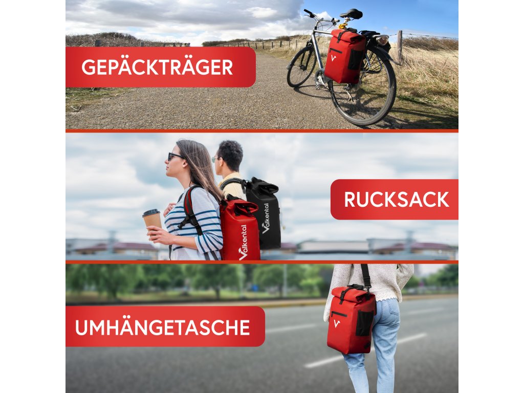 Reflexní loga Valkental zároveň zvyšují vaši viditelnost v silničním provozu, a tím i bezpečnost při jízdě. Praktický rolovací uzávěr umožňuje flexibilně upravit velikost podle potřeby.