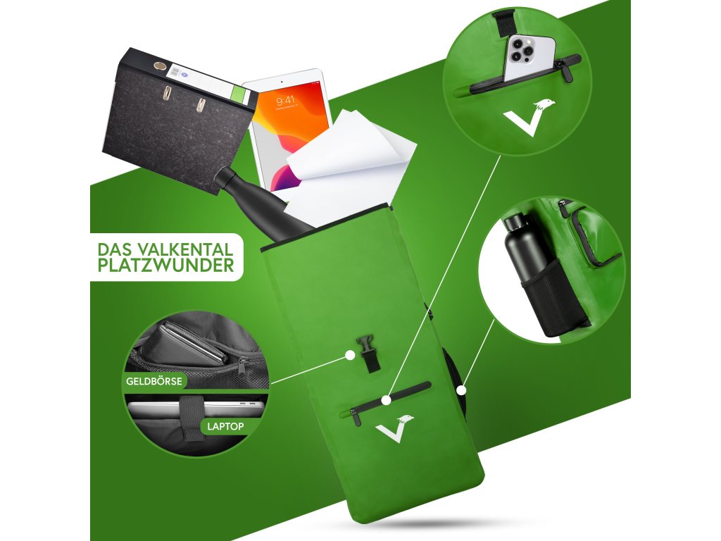 Reflexní loga Valkental zároveň zvyšují vaši viditelnost v silničním provozu, a tím i bezpečnost při jízdě. Praktický rolovací uzávěr umožňuje flexibilně upravit velikost podle potřeby.
