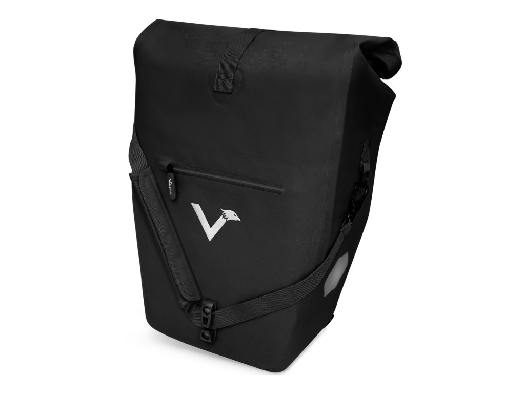 Brašna je vyrobena z ekologického TPU materiálu, který je nejen šetrnější k životnímu prostředí, ale zároveň extrémně odolný a zcela nepromokavý. Díky rolovacímu uzávěru lze objem snadno přizpůsobit aktuálním potřebám v rozmezí 22 až 28 litrů. Bezpečné uchycení na nosič zajišťují pevné háky vhodné pro nosiče s maximálním průměrem tyče 18 mm. Součástí balení jsou také redukční vložky, které umožňují přesné a stabilní přizpůsobení. Velkou výhodou je dostatečná vzdálenost uchycení od země (37 cm), která zabraňuje kontaktu brašny s kolem. Vnitřní prostor je prakticky řešený – nechybí polstrovaná přihrádka na notebook o rozměrech 32 × 31 cm ani síťovaná kapsa na drobnosti (33 × 14 cm). Pro pohodlné přenášení mimo kolo je brašna vybavena odnímatelným ramenním popruhem.