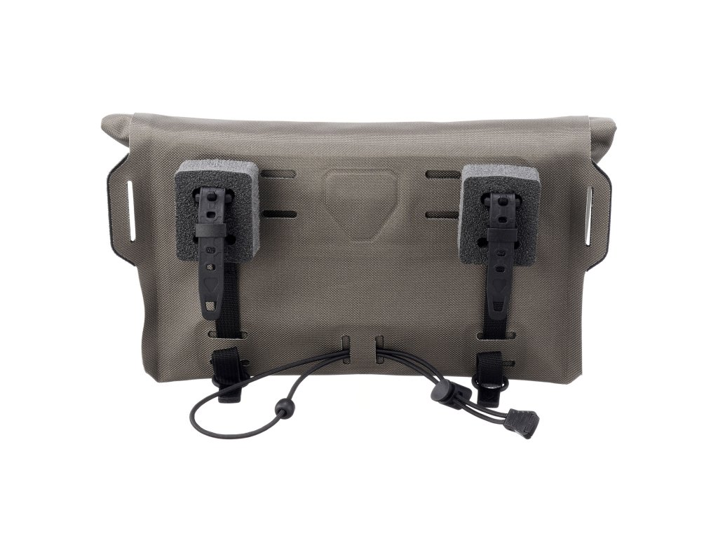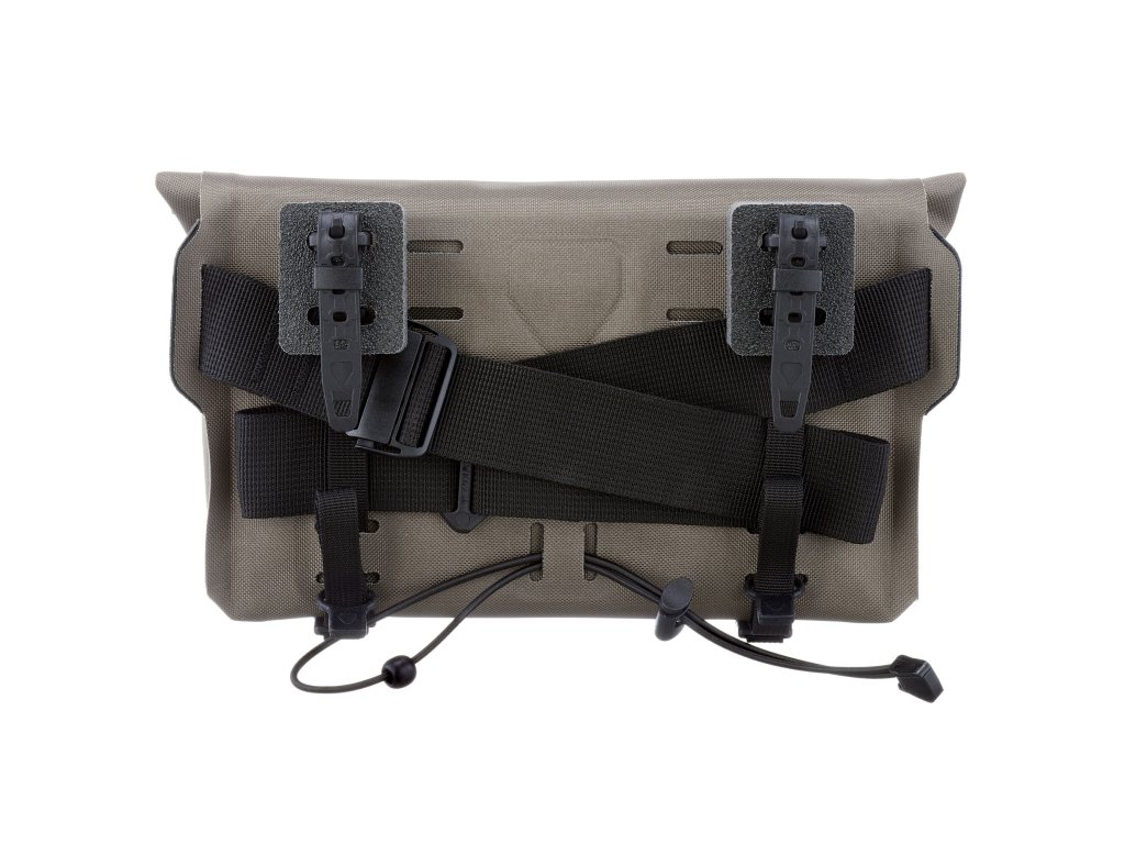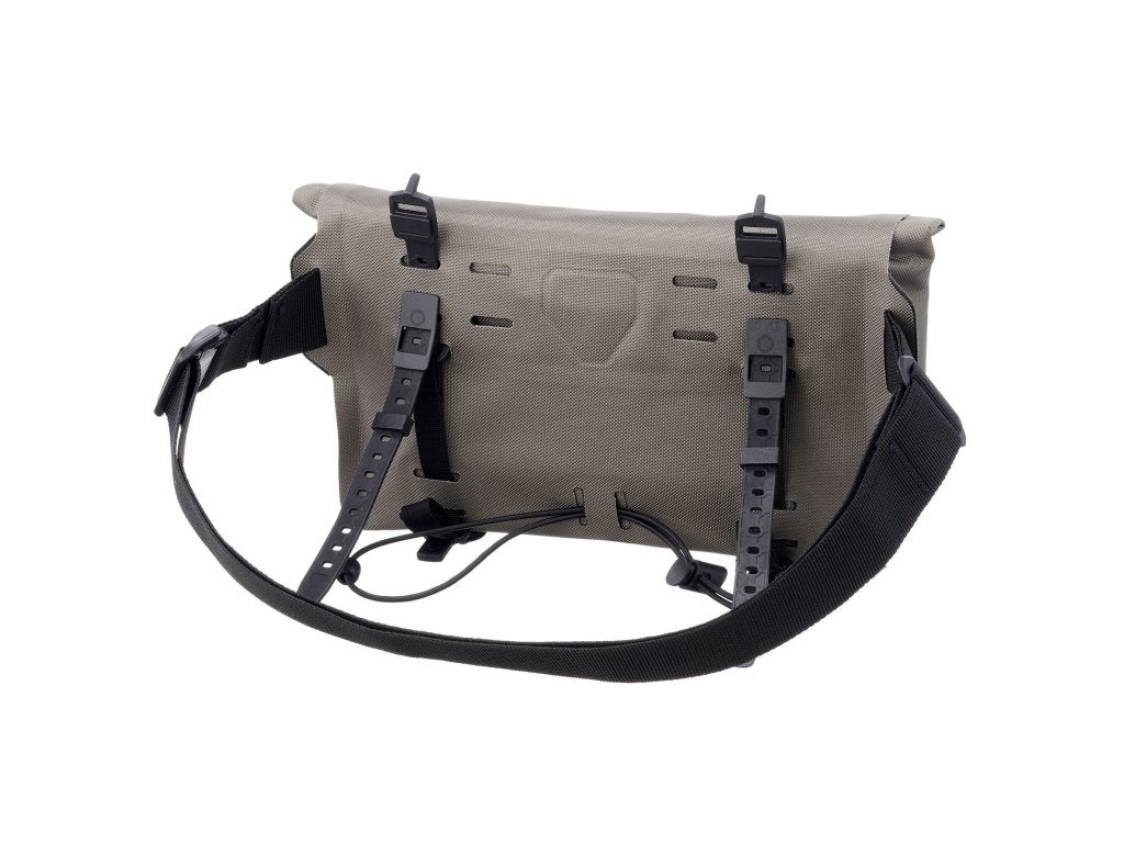 Díky širokému a pohodlnému ramennímu popruhu se pohodlně nosí. Aby vám popruh nepřekážel při připevňování brašny na řídítka, lze jej snadno odejmout nebo uložit na samotnou brašnu. Dva přiložené pásky (O-straps) a pěnové distanční podložky zajišťují pevné a stabilní usazení brašny na řídítkách. Přídavný gumový pásek zpevňuje uchycení a zabraňuje kývání. Když je brašnička plná, popruhy pomáhají zajistit otvor když nejde zavřít rolovací uzávěr.