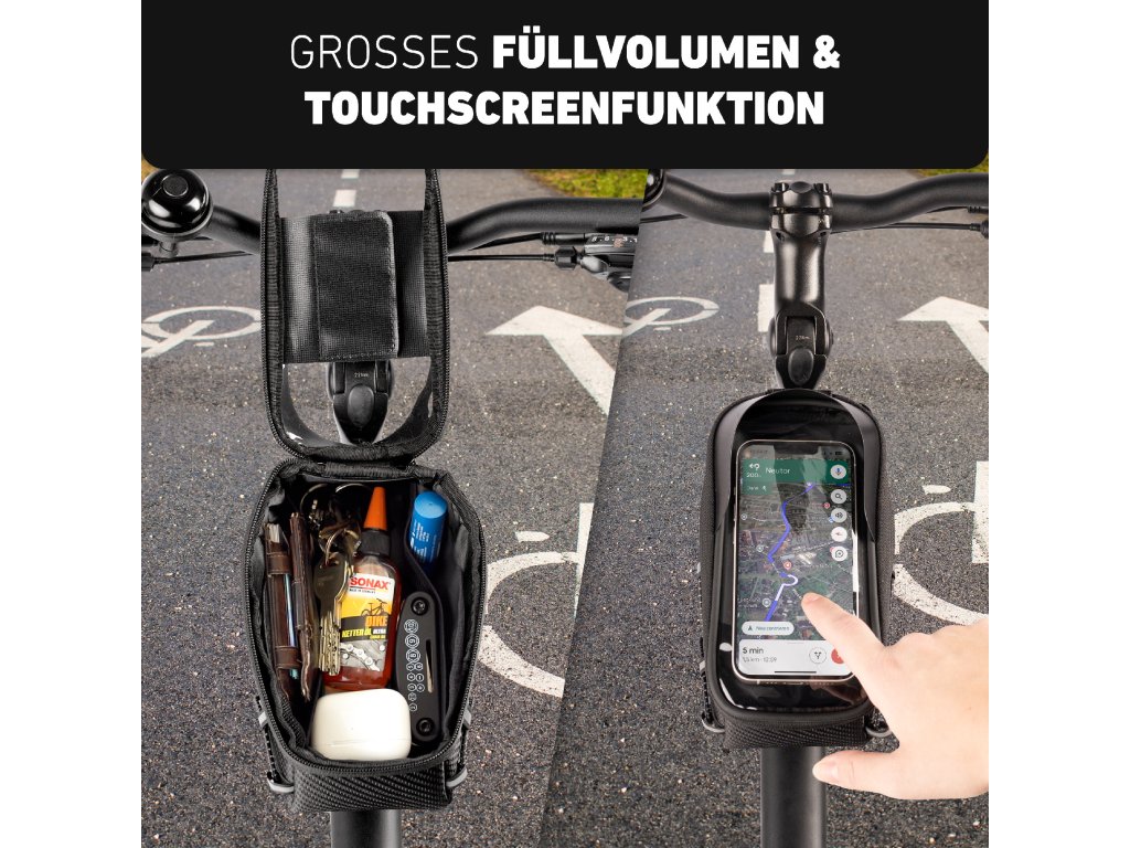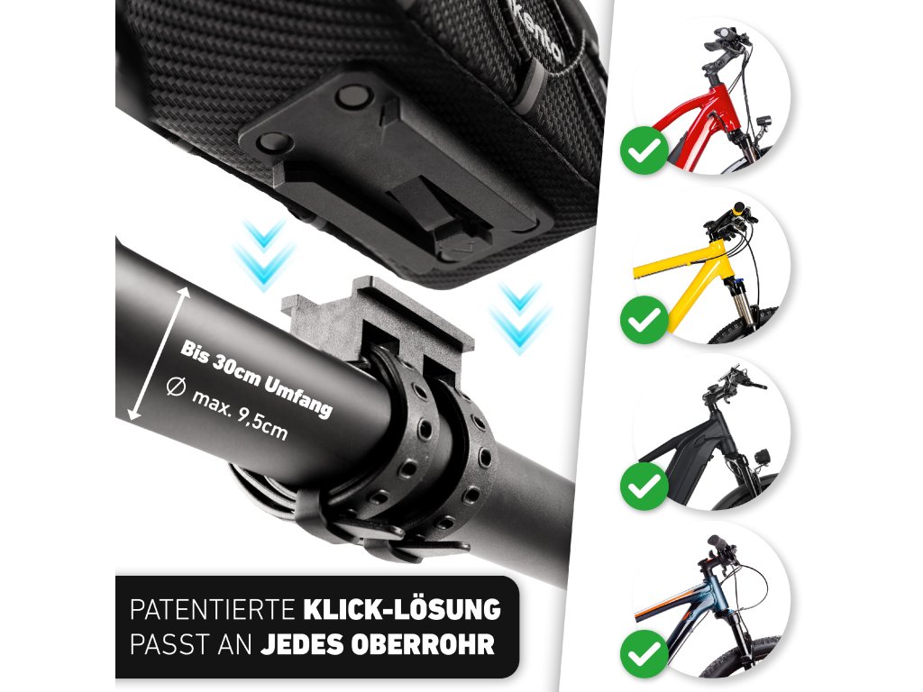 Nová rámová brašna nabízí praktické a snadno dostupné úložné řešení na cesty. S objemem 1 litr umožňuje bezpečně uložit chytrý telefon, nářadí nebo svačinu, aniž by ovlivnila jízdní vlastnosti kola. Inovativní adaptér zajišťuje jednoduchou a rychlou montáž, takže lze brašnu kdykoli flexibilně připevnit nebo odejmout. Díky reflexním prvkům budete lépe viditelní i za zhoršených světelných podmínek, zatímco robustní konstrukce garantuje bezpečné a stabilní uchycení na kole.