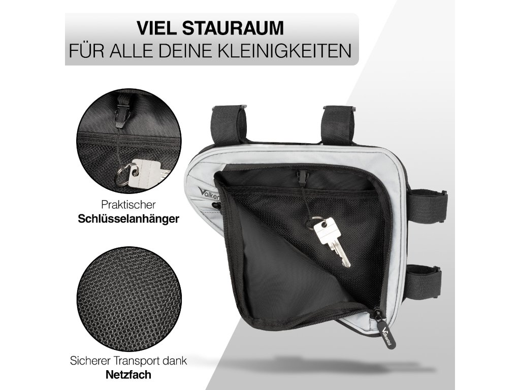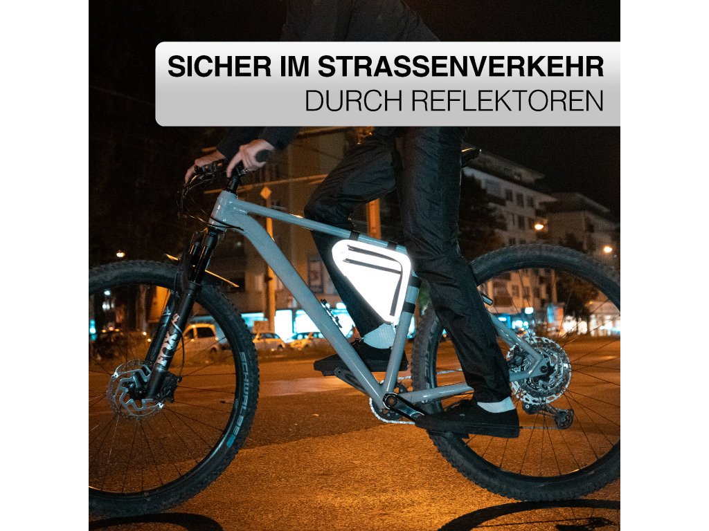Rámová brašna Valkental Triangle Bag v reflexním provedení je ideální volbou pro cyklisty, kteří chtějí nejen praktický úložný prostor, ale také lepší viditelnost a vyšší bezpečnost na silnici. Díky svému trojúhelníkovému tvaru perfektně zapadne do rámu kola a neomezuje jízdu. Nabízí dostatek místa pro osobní věci, jako je mobilní telefon, klíče, peněženka, nářadí nebo svačina. Reflexní povrch zvyšuje vaši viditelnost za šera, tmy i zhoršených světelných podmínek. Brašna se snadno upevňuje do rámu kola a drží pevně na svém místě i při jízdě v terénu.