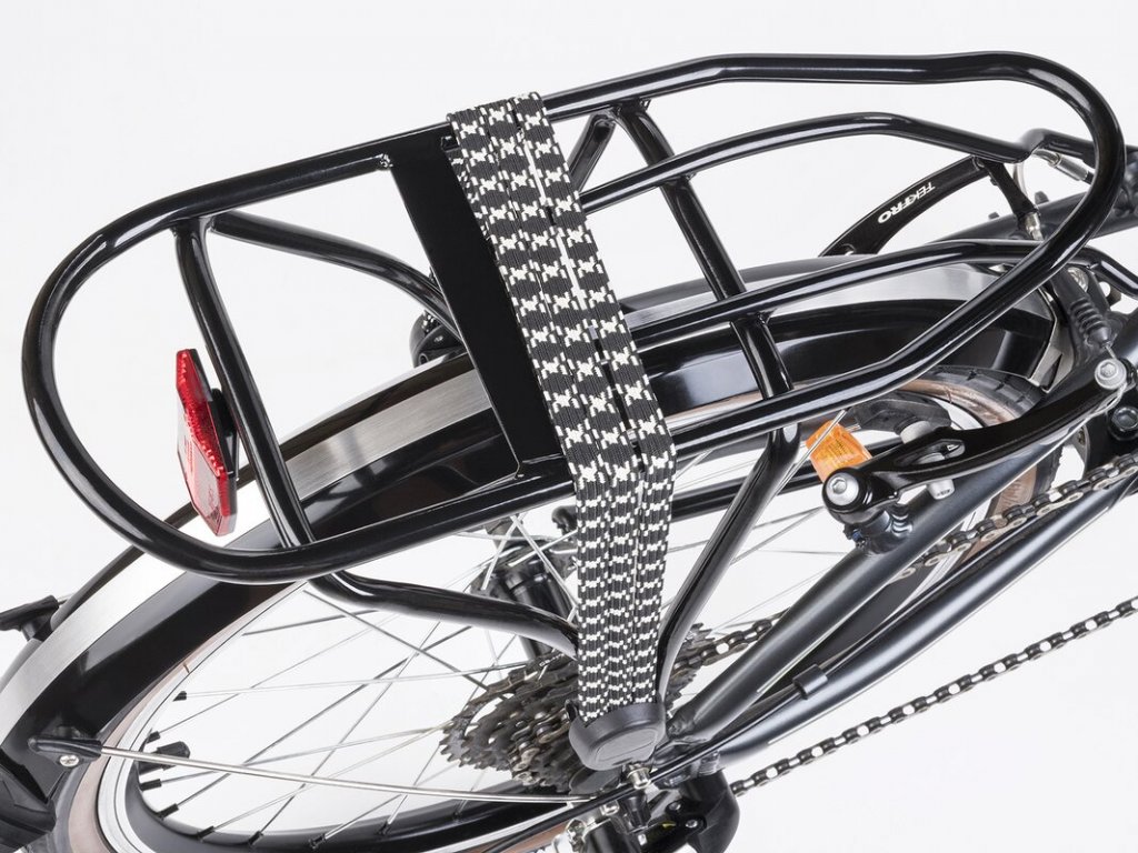 Teleskopický představec zvyšuje variabilitu použití (pro různé výšky postavy i styly jízdy). Vidlice je pevná z hi-ten oceli, pláště Kenda 20" x 1,5". Součástí výbavy jsou blatníky a zadní nosič, nechybí ani sklopné pedály. Celková hmotnost kola je 12,6kg, ve složeném i rozloženém stavu se tedy snadno přenáší.
