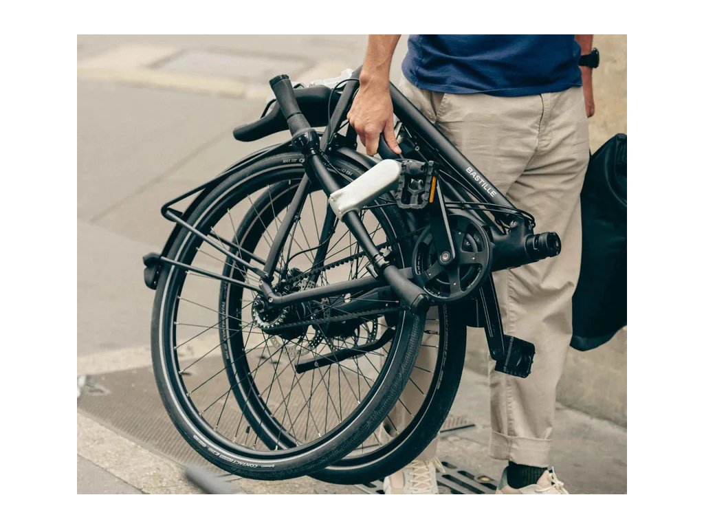 Konečně bicykl, který nám po bezmála dvaceti letech zkušeností se skládacími koly přináší jednoznačné odpovědi na veškeré dosud diskutabilní vlastnosti skládacích kol. Voilà! Posuďte sami: "Skládací kola mívají malé průměry kol a cyklisté vyšších postav mohu mít pocit, že působí směšně." Nikoli v případě Bastille! 27,2" průměr kol a plnohodnotný rám klasického tvaru je prakticky k nerozeznání od klasických jízních kol. "Skládání je pracné a zdržuje." Nikoli v připadě Bastille! Pečlivě a moderně propracovaný systém skládání nemůže být pohodlnější a trvá po zácviku 5 vteřin. "Skládací kola jsou špatně osazená." Opět nikoli v případě Bastille! Hydraulické kotoučové brzdy, řemenový převodník, nábojová převodovka a dynamo, moderní integrované LED osvětlení, karbonová vidlice - vysoký standard komponent a materiálů.