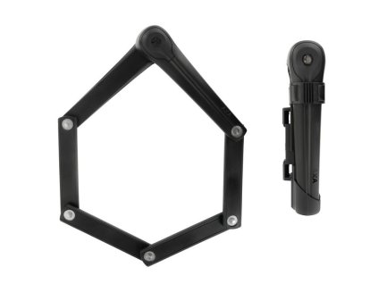 Kompaktní skládací zámek s osmi ocelovými články nabízí vysokou úroveň zabezpečení a zároveň minimální nároky na prostor. Tělo zámku je tvořeno tvrzenými ocelovými články s plastovým krytím, které chrání rám kola před poškrábáním. Nerezové šrouby zajišťují dlouhou životnost a odolnost vůči povětrnostním vlivům.