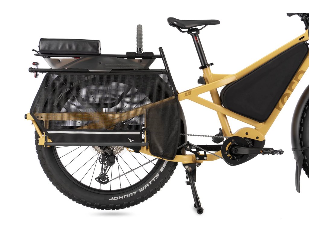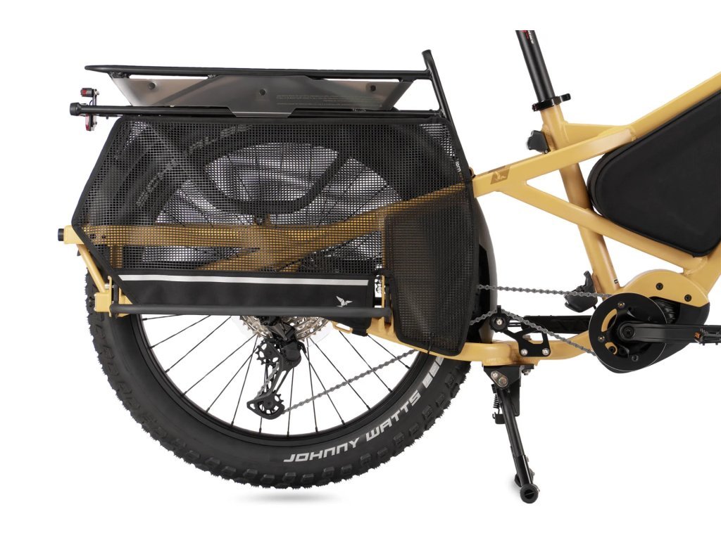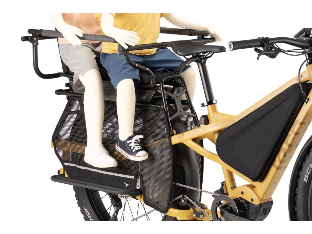 Sidekick Wheel Guard XL je sada dvou síťovaných chráničů kol, navržených speciálně pro nákladní kolo Tern Orox, které slouží k ochraně nohou a chodidel spolujezdců sedících na zadní části kola. Chrániče jsou vhodné pro cestující všech věkových kategorií, ale obzvlášť důležité jsou pro děti, které sedí v dětské sedačce bez integrovaných ochranných panelů na nohy. Stejně tak jsou nezbytné při použití různých typů příslušenství pro přepravu spolujezdců, kde by mohlo dojít k nechtěnému kontaktu s rotujícím zadním kolem. Díky síťované konstrukci jsou lehké, nenápadné a přitom efektivně plní svou bezpečnostní funkci a poskytují klid při každé jízdě, ať už vezete dítě do školy nebo dospělého pasažéra na společný výlet.