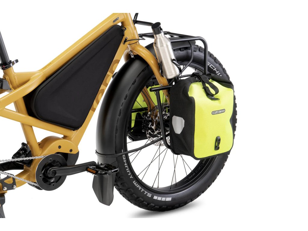 Pokud někdy na svých cyklovýpravách narazíte na situaci, kdy potřebujete více prostoru pro převoz vybavení, Trail Rack je přesně tím, co hledáte. Tento odolný a všestranný nosič byl navržen s důrazem na praktické využití v terénu, ať už jedete na víkendový bikepacking, delší výlet nebo jen potřebujete převézt víc věcí než obvykle. Horní nosnou plochu, kterou můžete využít pro připevnění větších zavazadel, stanů, spacáků nebo přídavných brašen. Boční vzpěry, které umožňují uchycení standardních cyklobrašen, čímž výrazně rozšiřují přepravní kapacitu vašeho kola. Díky promyšlené konstrukci s nízkým těžištěm pomáhá Trail Rack udržet kolo stabilní a vyvážené, i když vezete těžší náklad. To je obzvlášť důležité v terénu nebo při delších trasách. Nosič je perfektně sladěn s vidlicí kola Tern Orox, jejíž geometrie byla optimalizována právě pro použití s plně naloženým Trail Rackem. Výsledkem je výborná stabilita, jistota při řízení a pohodlí během celé jízdy.