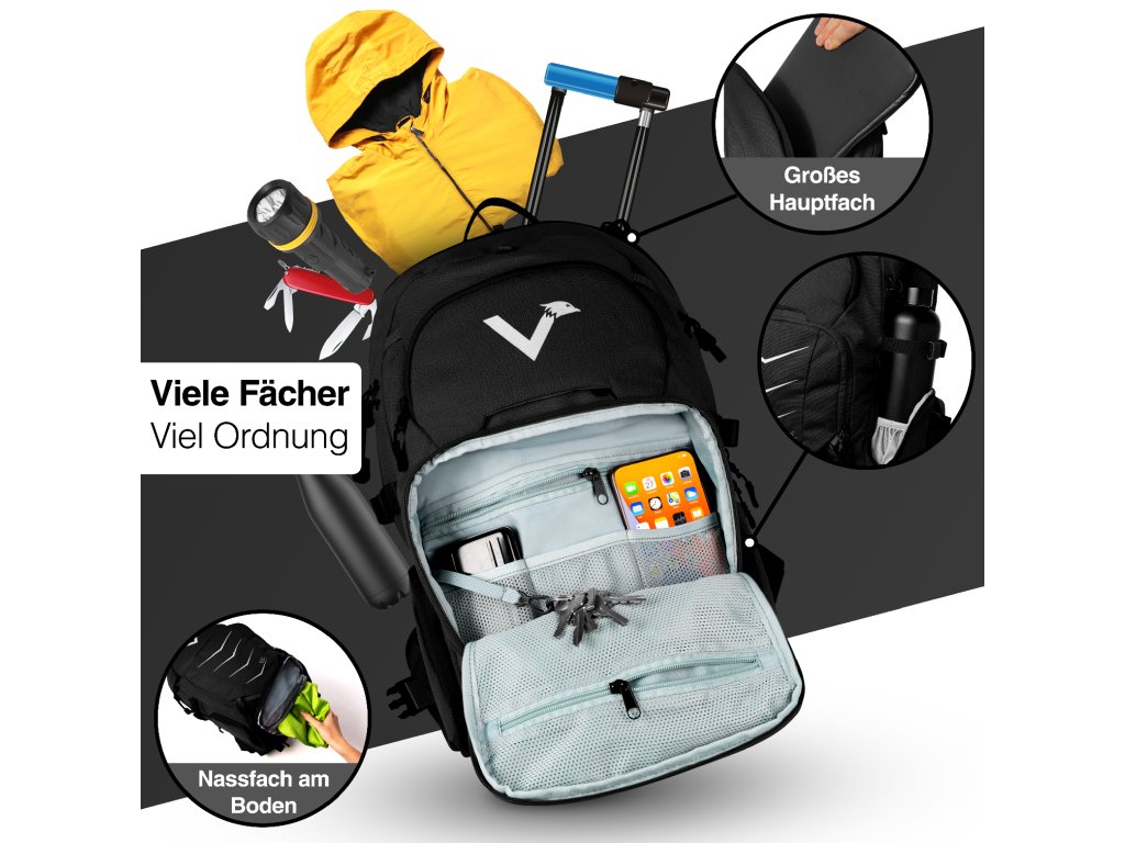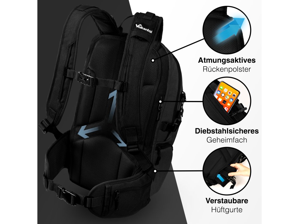 Díky promyšlenému systému kapes budete mít ve svých věcech vždy perfektní přehled. Nabízí chytré vnitřní uspořádání, vysoký komfort nošení a praktické detaily, které oceníte doma i na cestách. Samostatná polstrovaná kapsa bezpečně ochrání notebook až do velikosti 15", zatímco voděodolná spodní přihrádka je ideální pro uložení mokrého oblečení nebo bot. Batoh lze navíc rozšířit pomocí Sling Bag, což zvyšuje jeho flexibilitu při delších výpravách. Pro maximální pohodlí při nošení je Explorer V22 vybaven zasouvacími bederními popruhy, které lze snadno schovat, když je zrovna nepotřebujete. Reflexní prvky zvyšují vaši viditelnost za zhoršených světelných podmínek.