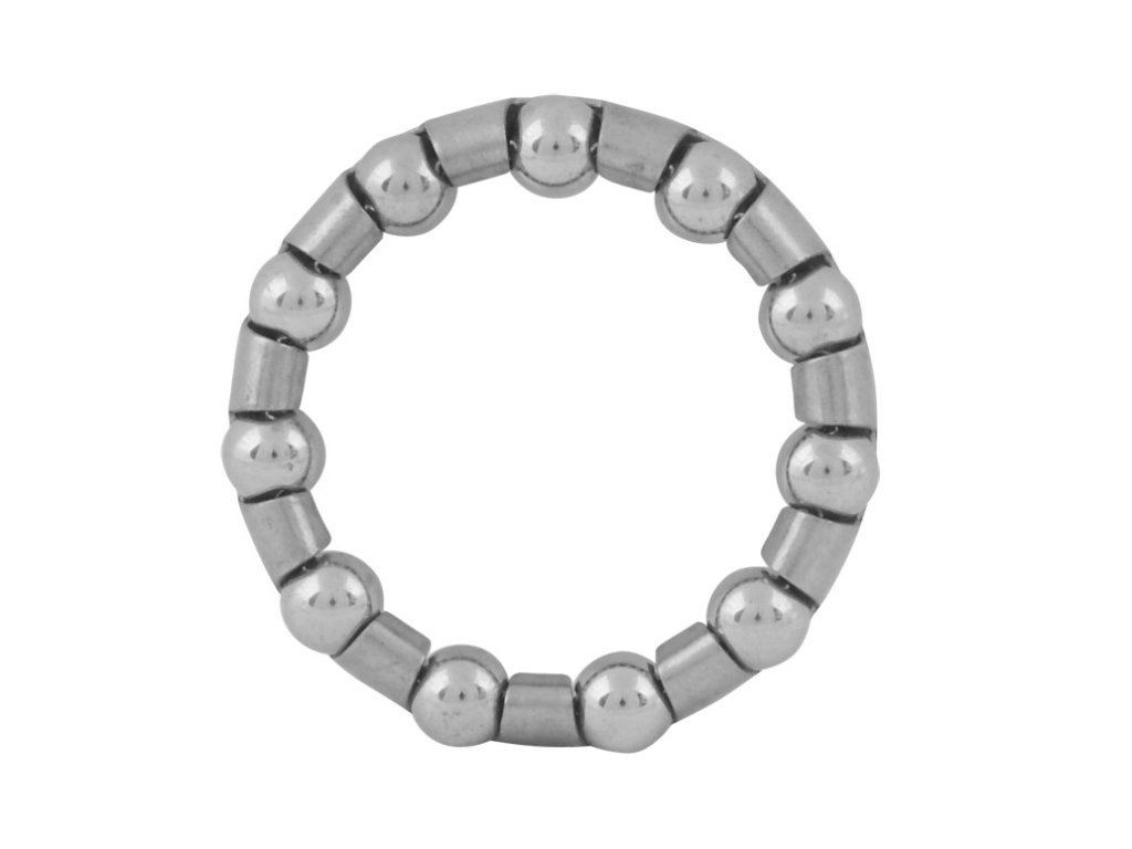 Náhradní ložiskový věneček osazený ocelovými kuličkami, určený pro vnitřní mechanismus zadních nábojů typu Torpédo. Věneček zajišťuje přesné vedení kuliček v dráze, což snižuje tření a usnadňuje montáž oproti skládání jednotlivých kuliček "na vazelínu".