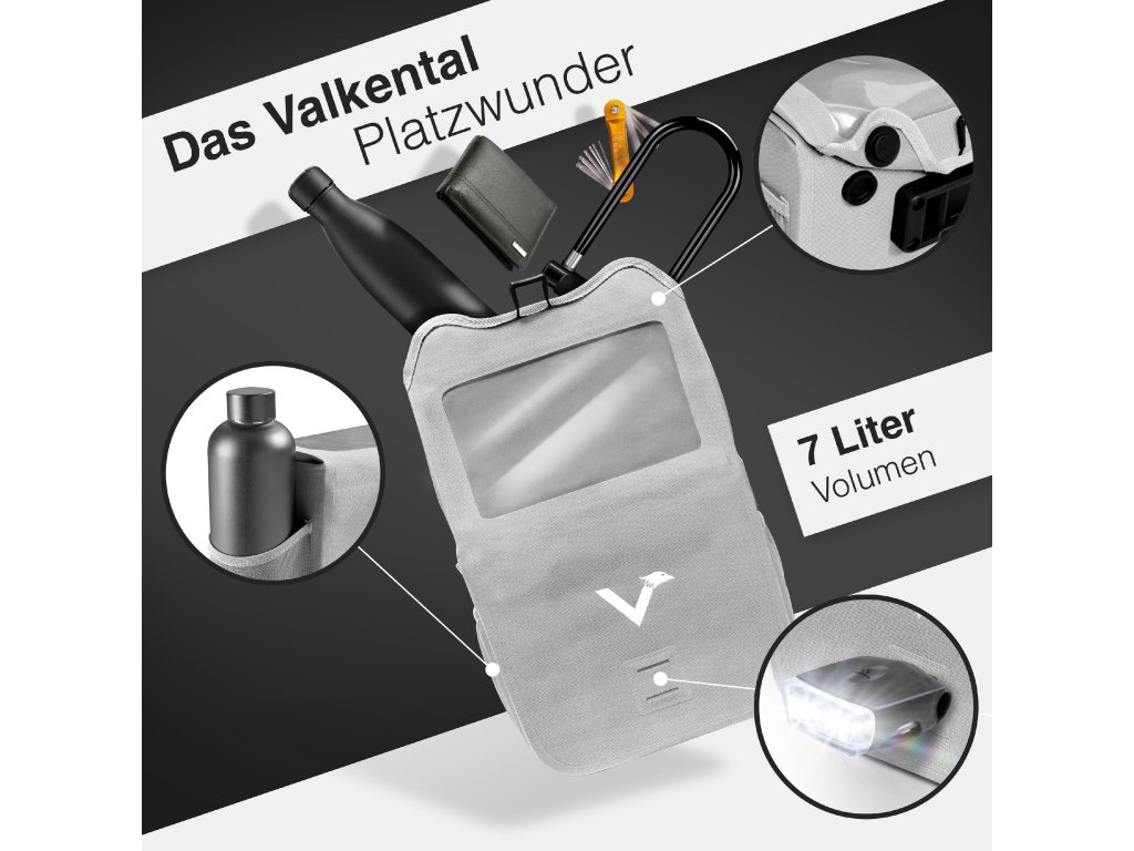 Vesmírně šedá řídítková brašna Valkental Front Pack 7l