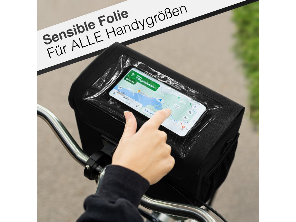 Brašna má zesílené tělo a je po celém obvodu utěsněna svařovanými švy, takže spolehlivě ochrání obsah před deštěm a nečistotami. Rychlý přístup zajišťuje magnetické zavírání, které umožňuje pohodlné otevření i zavření během okamžiku. Integrovaná kapsa na mobilní telefon je vhodná pro telefony všech velikostí a poskytuje bezpečné a přehledné uložení.