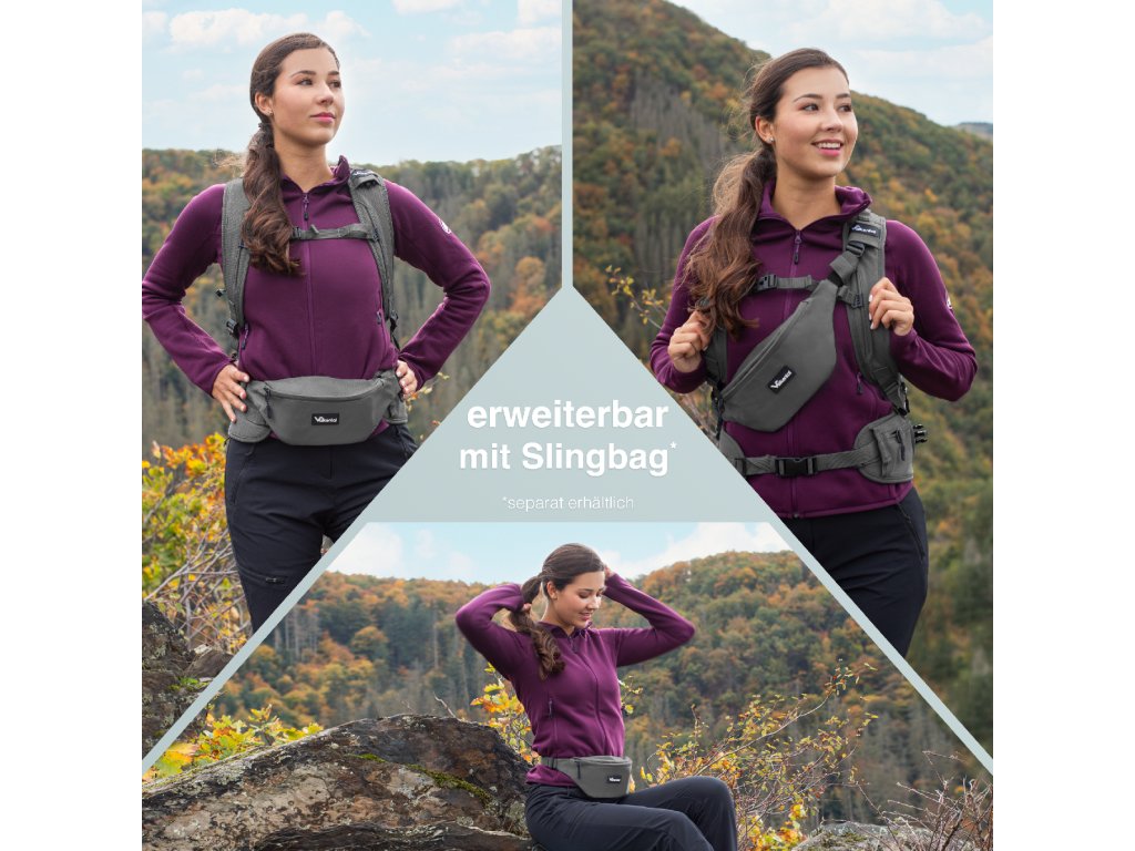Pro maximální pohodlí při nošení je Explorer V22 vybaven zasouvacími bederními popruhy, které lze snadno schovat, když je zrovna nepotřebujete. Reflexní prvky zvyšují vaši viditelnost za zhoršených světelných podmínek.